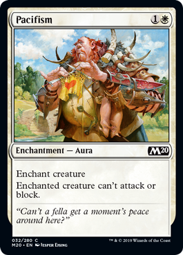 Pacifism, Core Set 2020, Enchantment — Aura, Common, White, Standard, Pioneer, Modern, Commander, Mana Cost: 1W