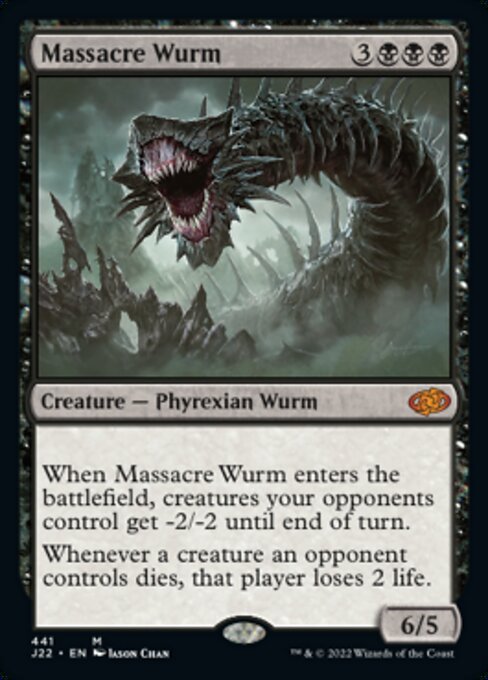 Massacre Wurm, Jumpstart 2022, Creature — Phyrexian Wurm, Mythic, Black, Standard, Pioneer, Modern, Commander, Mana Cost: 3BBB