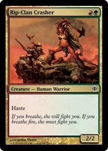Rip-Clan Crasher, Shards of Alara, Creature — Human Warrior, Common, Multicolored, Modern, Commander, Mana Cost: RG