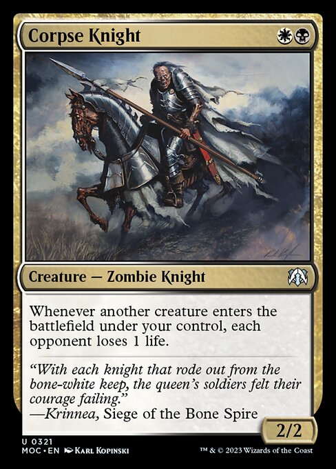 Corpse Knight, March of the Machine Commander, Creature — Zombie Knight, Uncommon, Multicolored, Pioneer, Modern, Commander, Mana Cost: WB