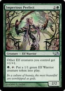 Imperious Perfect, Duel Decks: Elves vs. Goblins, Creature — Elf Warrior, Uncommon, Green, Standard, Pioneer, Modern, Commander, Mana Cost: 2G