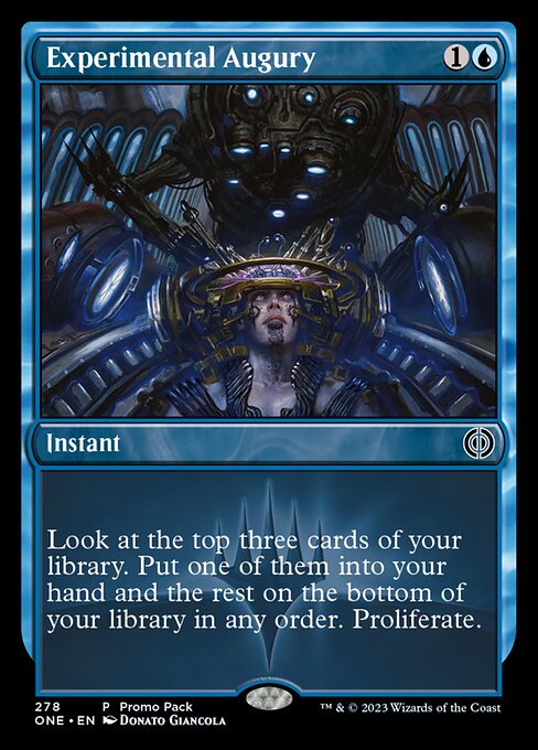 Experimental Augury, Phyrexia: All Will Be One, Instant, Common, Blue, Pioneer, Modern, Commander, Mana Cost: 1U