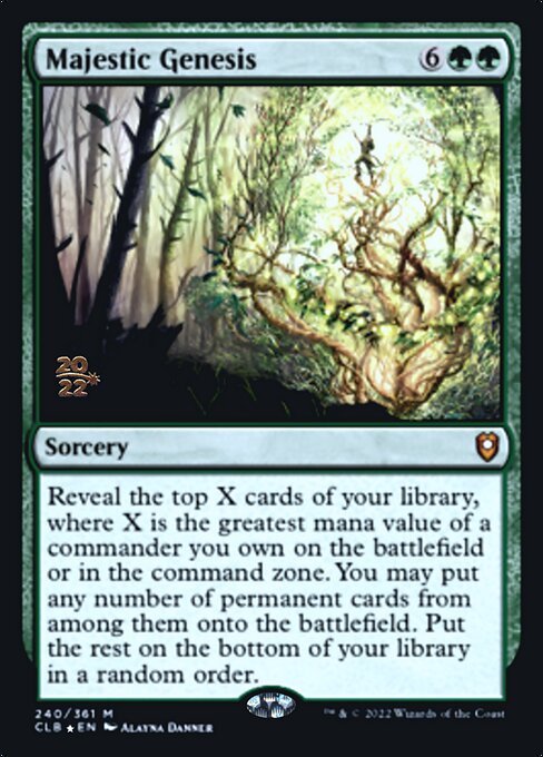 Majestic Genesis, Battle for Baldur's Gate Promos, Sorcery, Mythic, Green, Commander, Mana Cost: 6GG