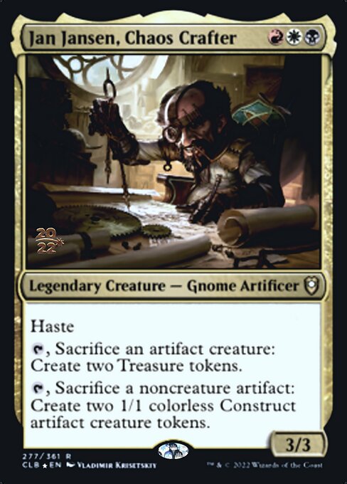 Jan Jansen, Chaos Crafter, Battle for Baldur's Gate Promos, Legendary Creature — Gnome Artificer, Rare, Multicolored, Commander, Mana Cost: RWB