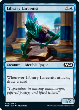 Library Larcenist, Core Set 2021, Creature — Merfolk Rogue, Common, Blue, Pioneer, Modern, Commander, Mana Cost: 2U