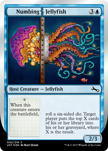 Numbing Jellyfish, Unstable, Host Creature — Jellyfish, Common, Blue, Commander, Mana Cost: 3U