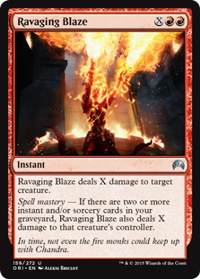 Ravaging Blaze, Magic Origins, Instant, Uncommon, Red, Pioneer, Modern, Commander, Mana Cost: XRR