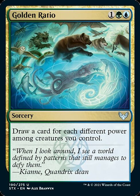 Golden Ratio, Strixhaven: School of Mages, Sorcery, Uncommon, Multicolored, Pioneer, Modern, Commander, Mana Cost: 1GU