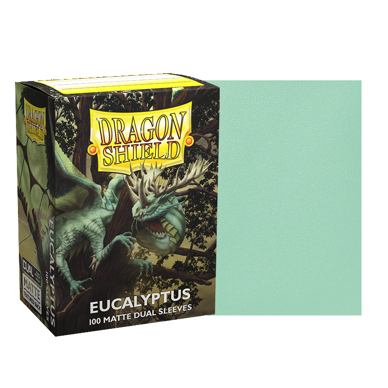 Dragon Shield Matte Dual sleeves. Clear front and a textured matte back. Fully opaque sleeves with a black interior, an elegant backdrop for black bordered cards.