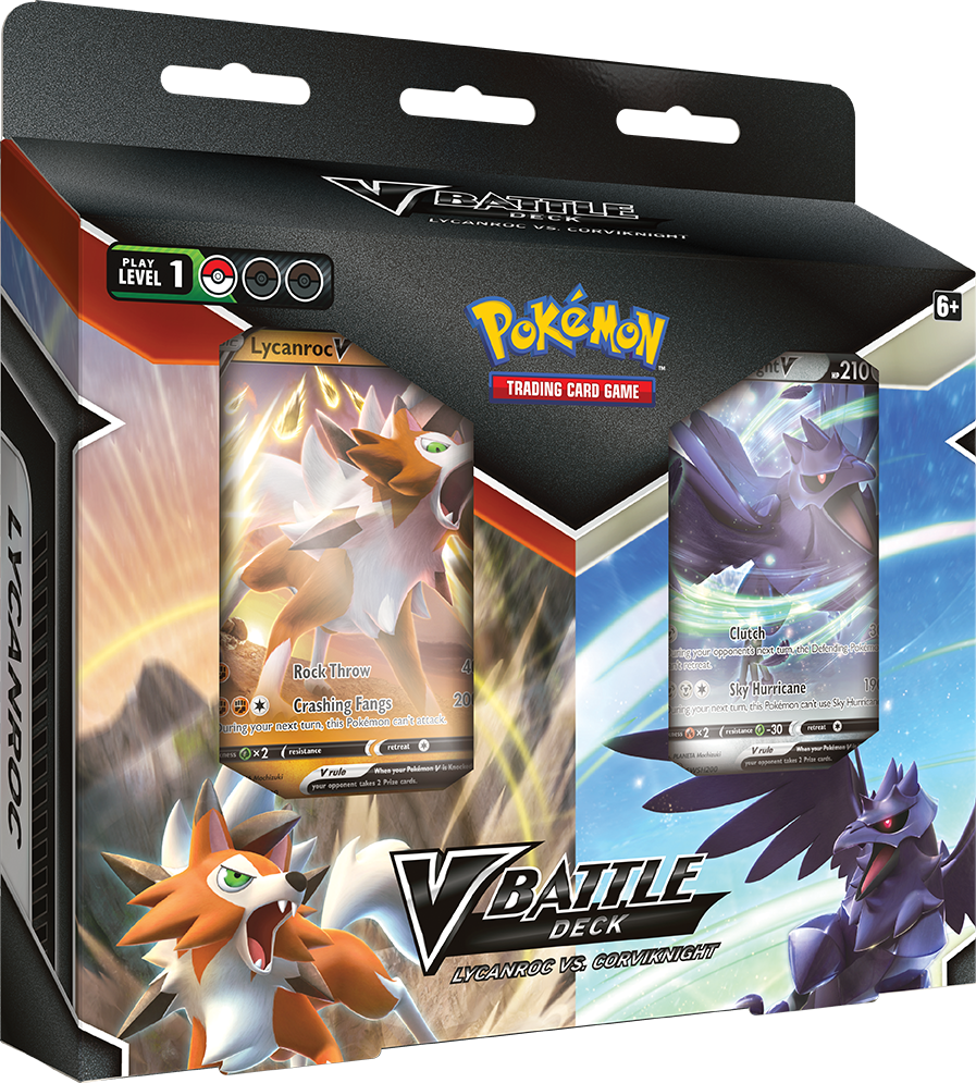Each deck includes a powerful special Pokemon: Lycanroc V or Corviknight V
