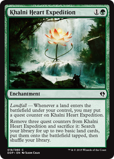 Khalni Heart Expedition, Duel Decks: Zendikar vs. Eldrazi, Enchantment, Common, Green, Modern, Commander, Mana Cost: 1G