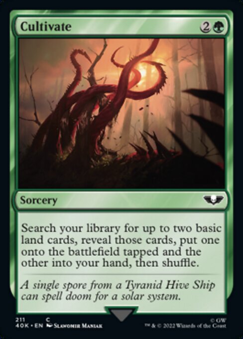 Cultivate, Warhammer 40,000 Commander, Sorcery, Common, Green, Pioneer, Modern, Commander, Mana Cost: 2G