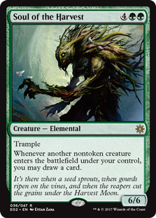 Soul of the Harvest, Explorers of Ixalan, Creature — Elemental, Rare, Green, Pioneer, Modern, Commander, Mana Cost: 4GG