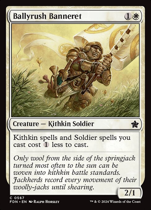 Ballyrush Banneret, Foundations, Creature — Kithkin Soldier, Common, White, Standard, Pioneer, Modern, Commander, Mana Cost: 1W