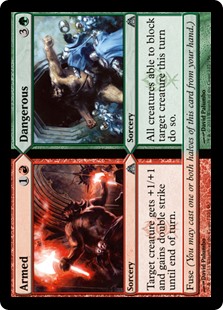 Armed // Dangerous, Dragon's Maze, Sorcery // Sorcery, Uncommon, Multicolored, Pioneer, Modern, Commander, Mana Cost: 1R // 3G