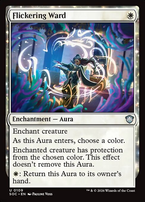 Flickering Ward, Secrets of Strixhaven Commander, Enchantment — Aura, Uncommon, White, Commander, Mana Cost: W
