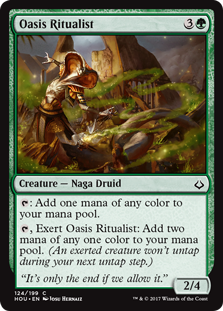Oasis Ritualist, Hour of Devastation, Creature — Snake Druid, Common, Green, Pioneer, Modern, Commander, Mana Cost: 3G