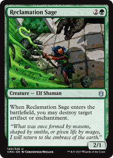 Reclamation Sage, Commander Anthology, Creature — Elf Shaman, Uncommon, Green, Standard, Pioneer, Modern, Commander, Mana Cost: 2G
