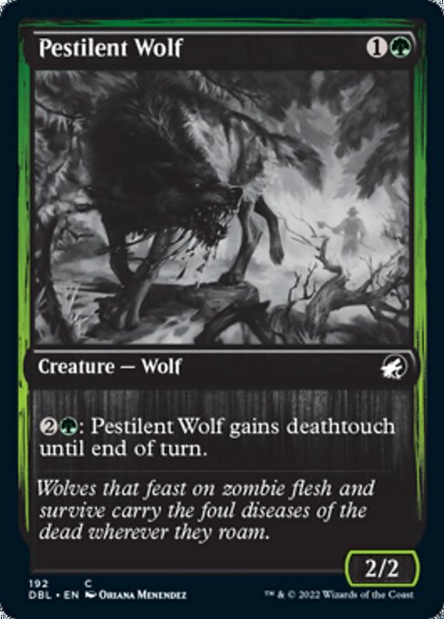 Pestilent Wolf, Innistrad: Double Feature, Creature — Wolf, Common, Green, Pioneer, Modern, Commander, Mana Cost: 1G