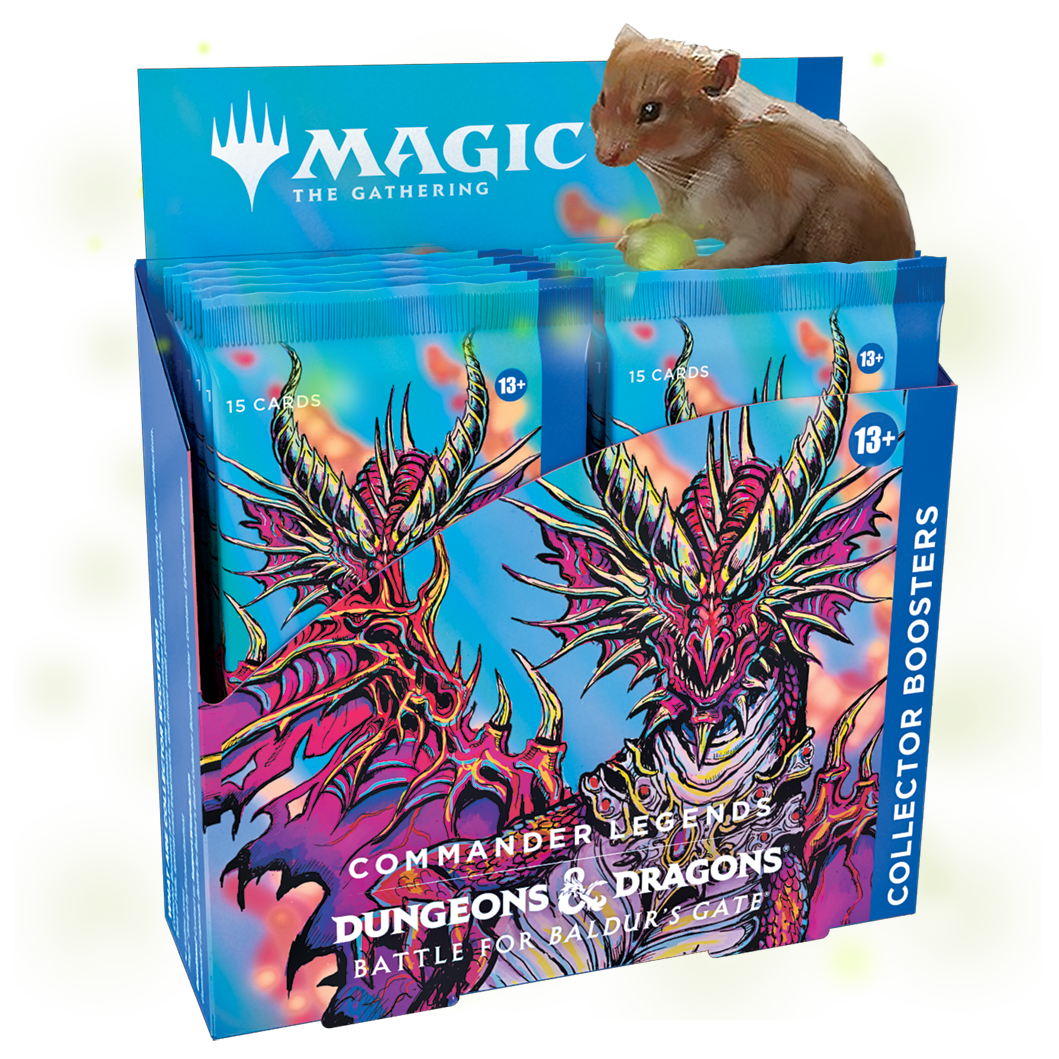 If you are looking for the coolest, shiniest, most exciting Commander cards this side of Faerun, look no further. The Commander Legends: Battle for Baldurs Gate Collector Booster Box contains 12 Commander Legends: Battle for Baldurs Gate Collector Boosters.